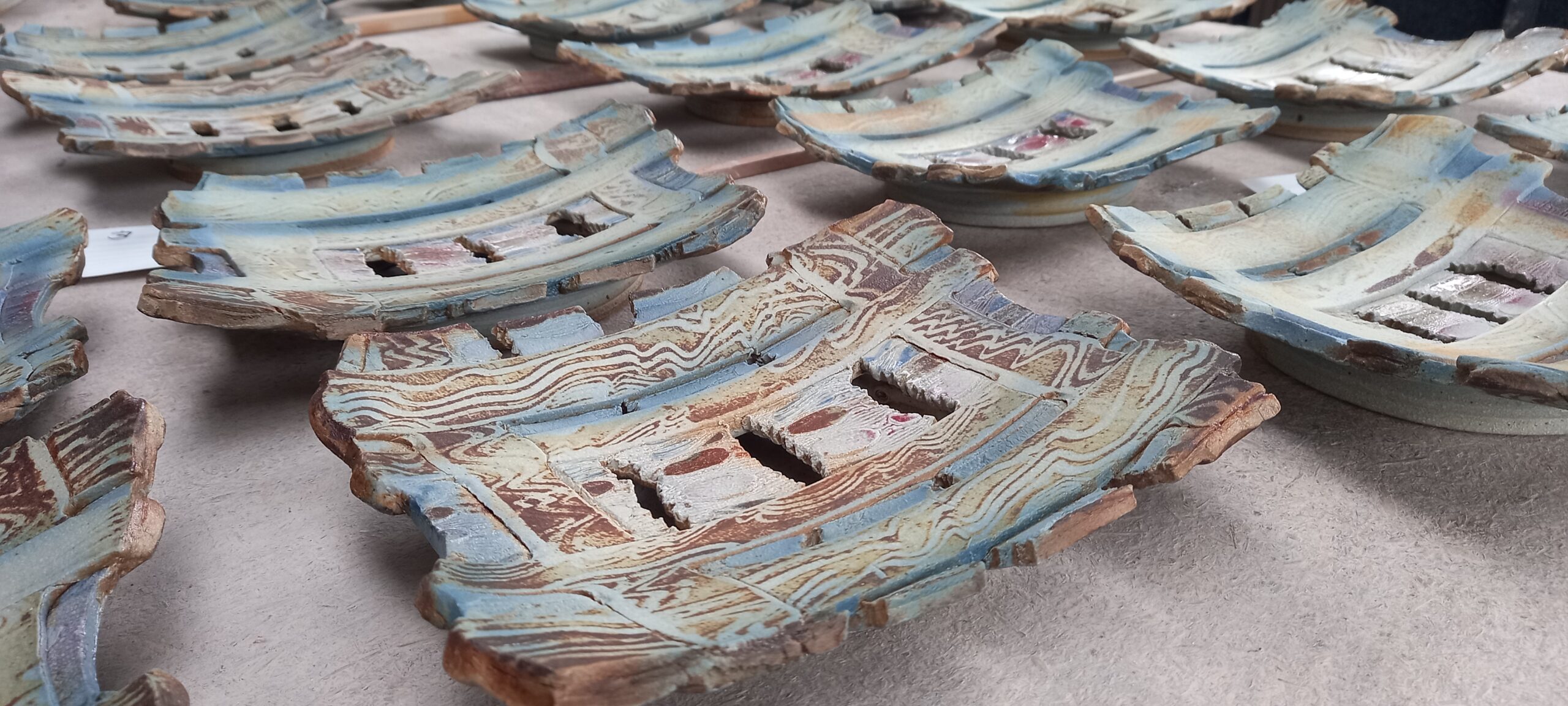Jim Robison limited edition sculptural dishes, a special commission for York Art Gallery’s Balcony Shop.