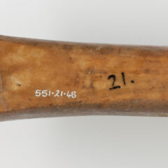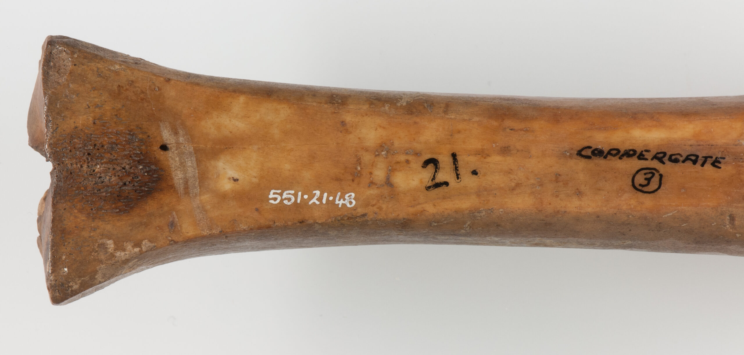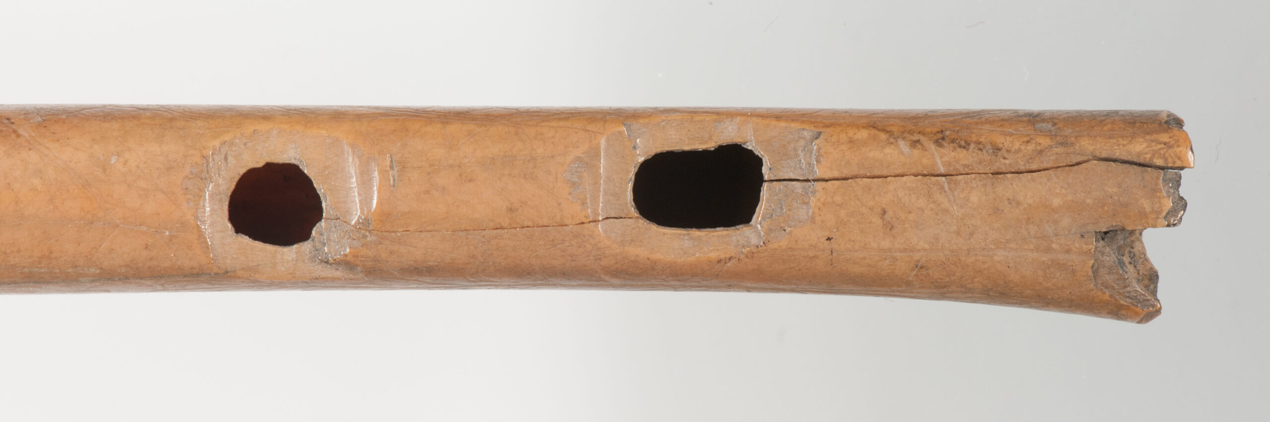 The wooden flute, meanwhile, conjures visions of a celebrated Viking character: the skald. Skalds were poets who composed verses, sometimes in honour of prominent kings or local leaders, and safeguarded the oral storytelling traditions of Scandinavian settlers. They sometimes sang these verses unaccompanied, but music like that produced by the flute would have helped to imbue their performances with atmosphere, engaging audiences sat around hearths or attending feasts. The flute in the museum’s collection could have belonged to a skald, but it also could have been made by a local craftsman and kept in a homestead on the Hungate site. Communal knowledge of music-making in the Viking Age would have allowed non-specialists to play wind instruments for their families and friends, even if they weren’t famed skalds.