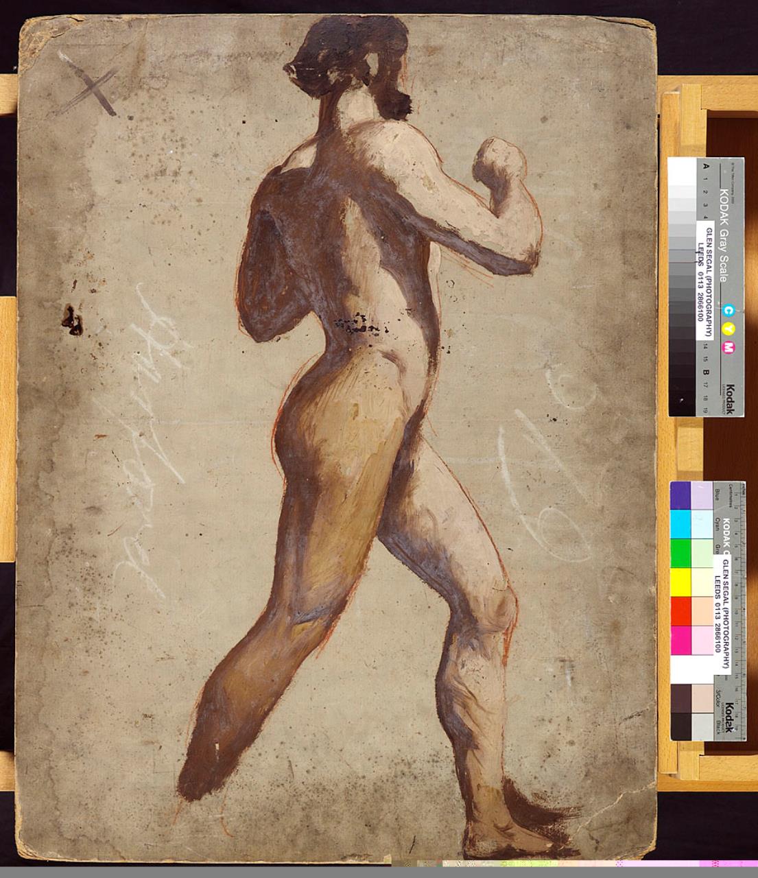 Male nude walking (recto); male nude boxing (verso), with drapery and small figure study