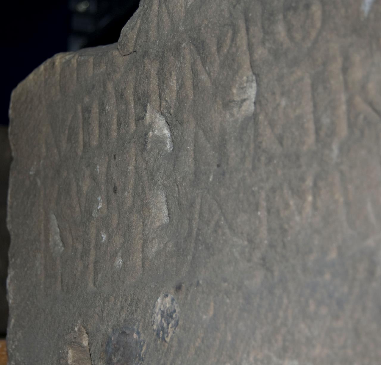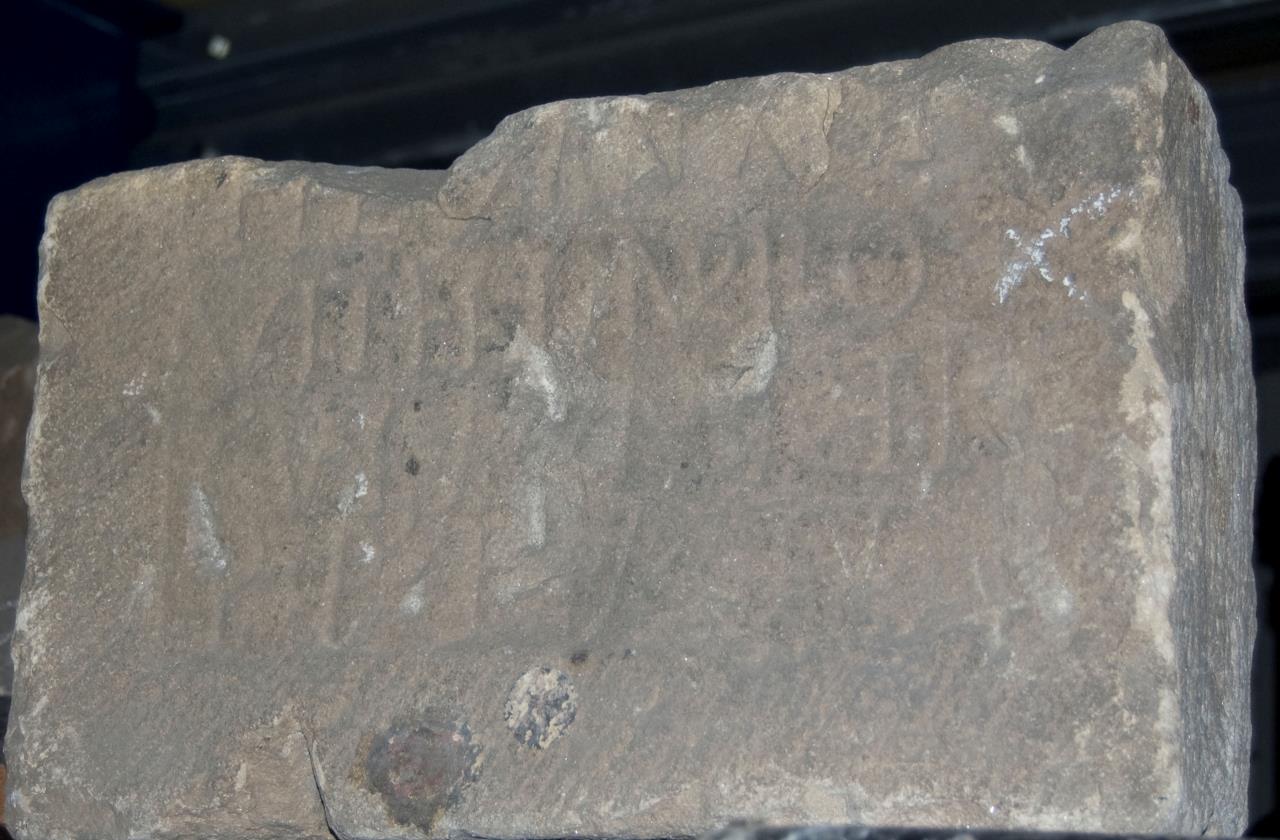 - Described in Eboracum as "Tombstone fragment, squared for reuse as a medieval building stone, 1ft 5ins by 10ins by 9 and 1/2 ins.... .....FIL (..) V(IXIT) AN(NOS) XIII ... VITELLIA PRO CVLA MATER P(IENTISSIME) P(OSVIT) L(IBERO)... '...child, lived 13 years. Vitellia Procula, the mother, most dutifully set up (this tombstone) for her child.' At the end of the inscription, medieval stonemasons have added the letters AM, for Ave Maria and a cross, to hallow the heathen inscription. The sex of the child remains uncertain."