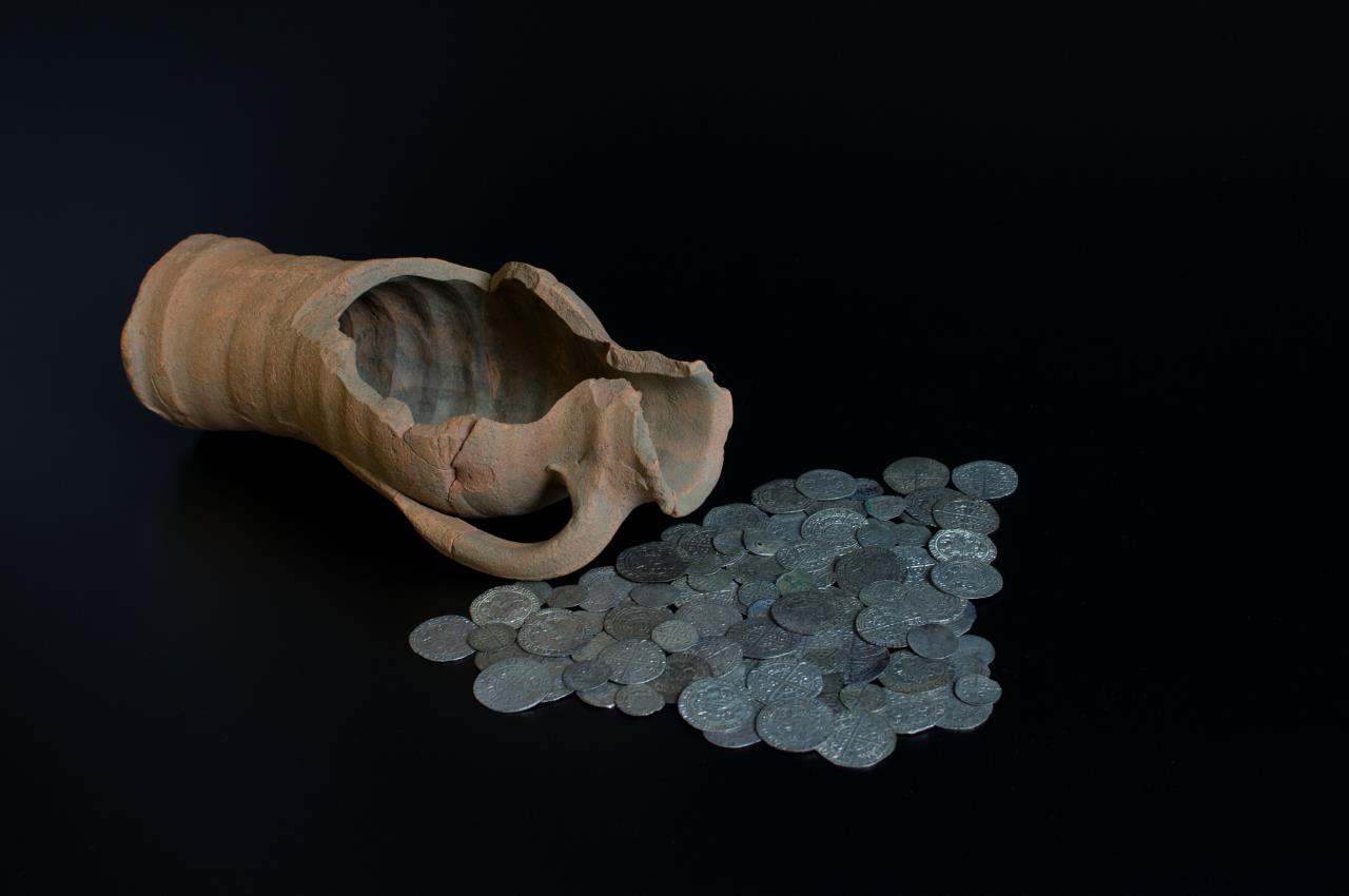 - Unglazed jug with single handle. Contained the Ryther hoard.