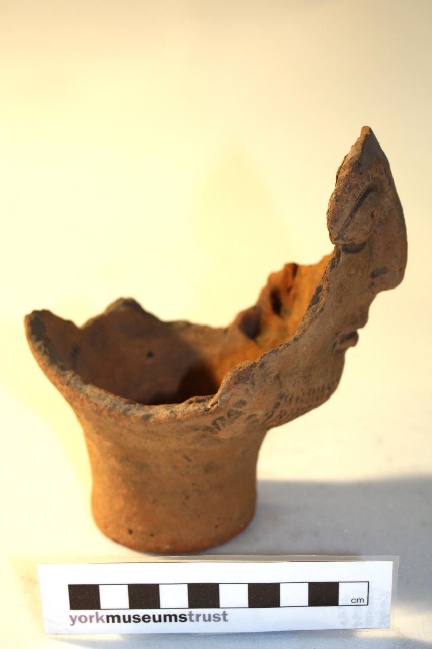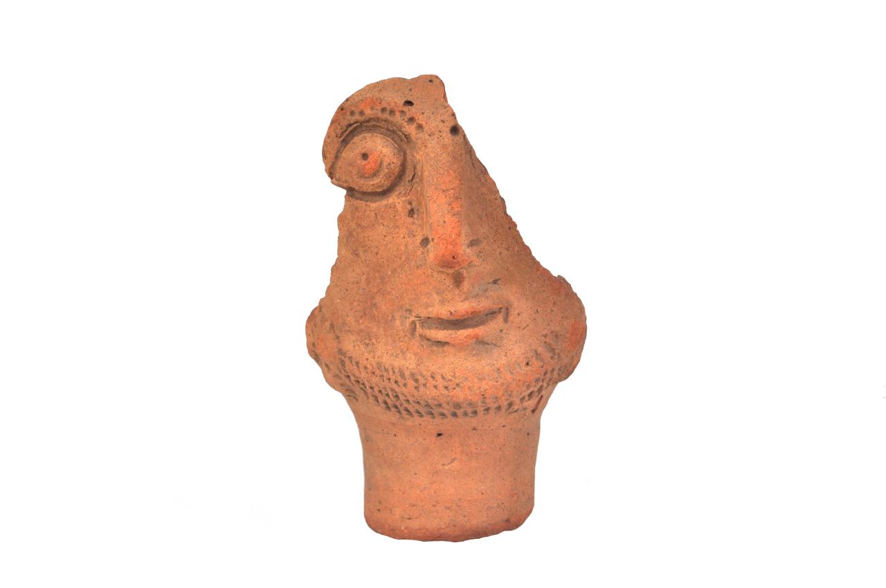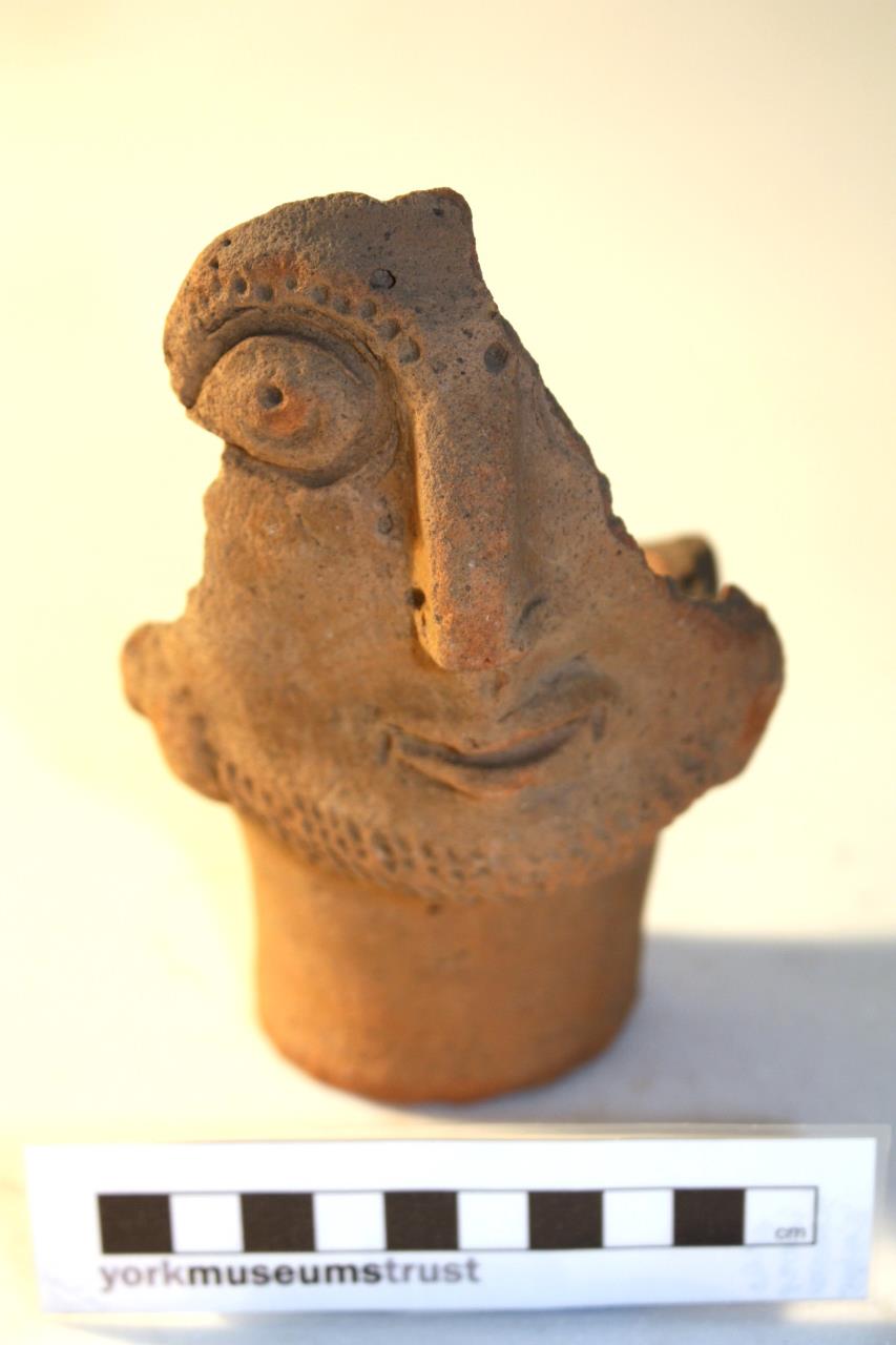 - Head pot or face pot depicting male face with beard and eye brows, but no moustache.
