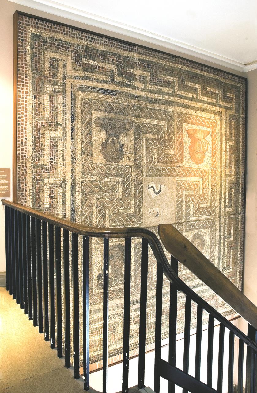 - Mosaic decorated with the four seasons in the corners and Medusa in the centre. Eboracum describes the finding of the mosaic: "House with three mosaics, was found in 1853 under Toft Green, 160ft SW of Barker Lane, extending from the centre of the roadway to within 1ft of the building frontage on the SE side. The aligment was that of Road 10 and not of the nearby buildings on the old Railway Station site. The house had at least five rooms. A posthumous coin of Claudius II (AD 268-270) and traces of an earlier concrete floor were beneath the mosaic in Room ii [this mosaic]." It goes on to describe the mosaic itself: "Room ii contained the mosaic, 13 and 3/4 ft square, depicting the Four Seasons... The mosaic has a head of Medusa, now very badly damaged, in the middle between the headds and shoulders of four female figures representing the seasons against a simple geometric background. Spring is symbolised by a bird, Summer by a rake, Autumn by a bunch of grapes and Winter by a bare bough, the attributes being on or beside the shoulders."