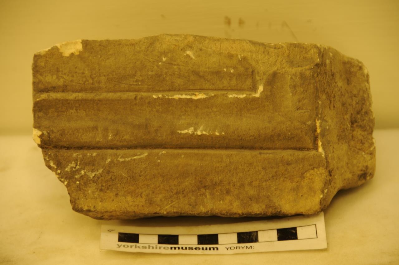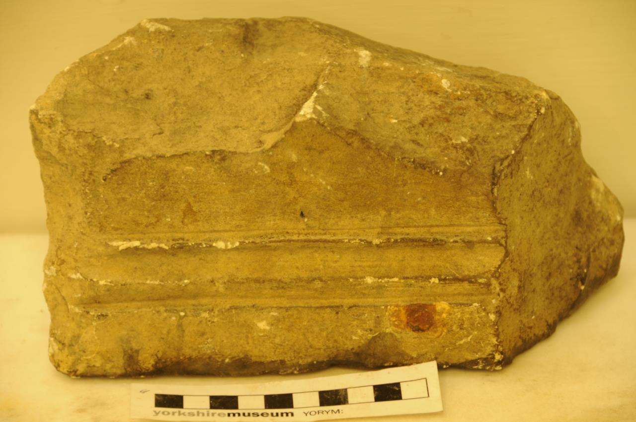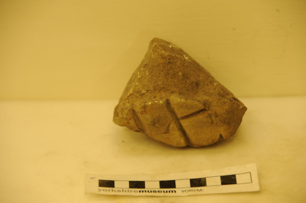 - Fragmentary inscribed object broken up into 11 small parts. RIB 642; "Fragments of a limestone dedication with moulding on the sides. Found in 1878 in the garden of the New (now Royal) Station Hotel, York...