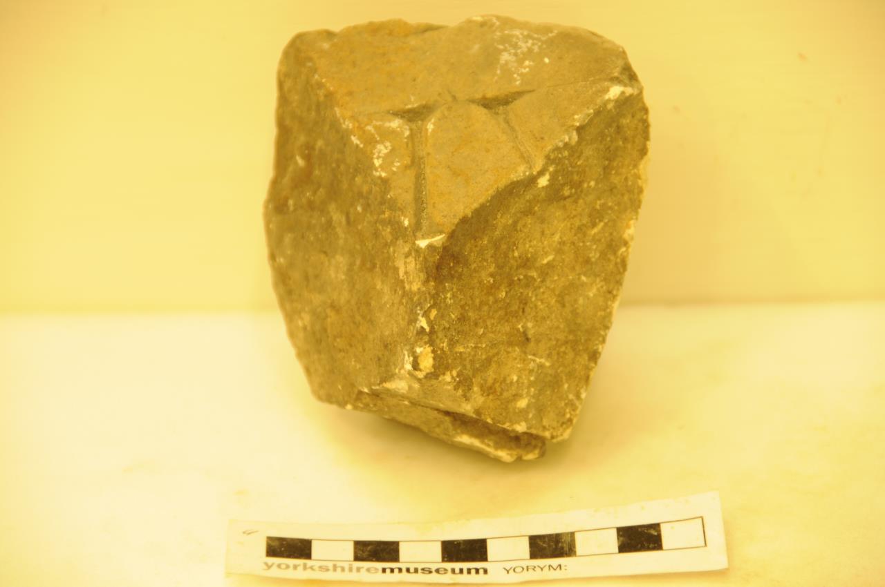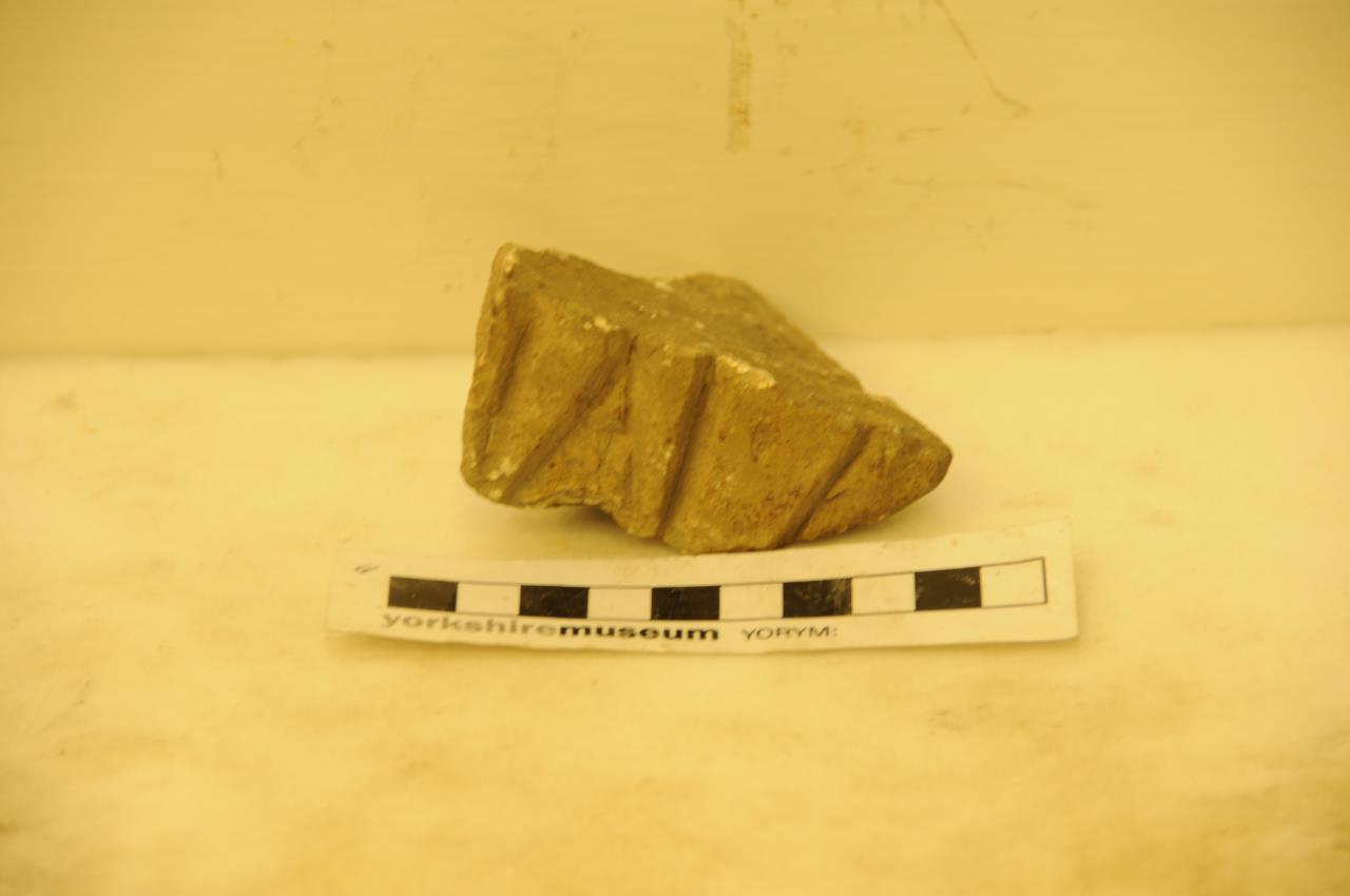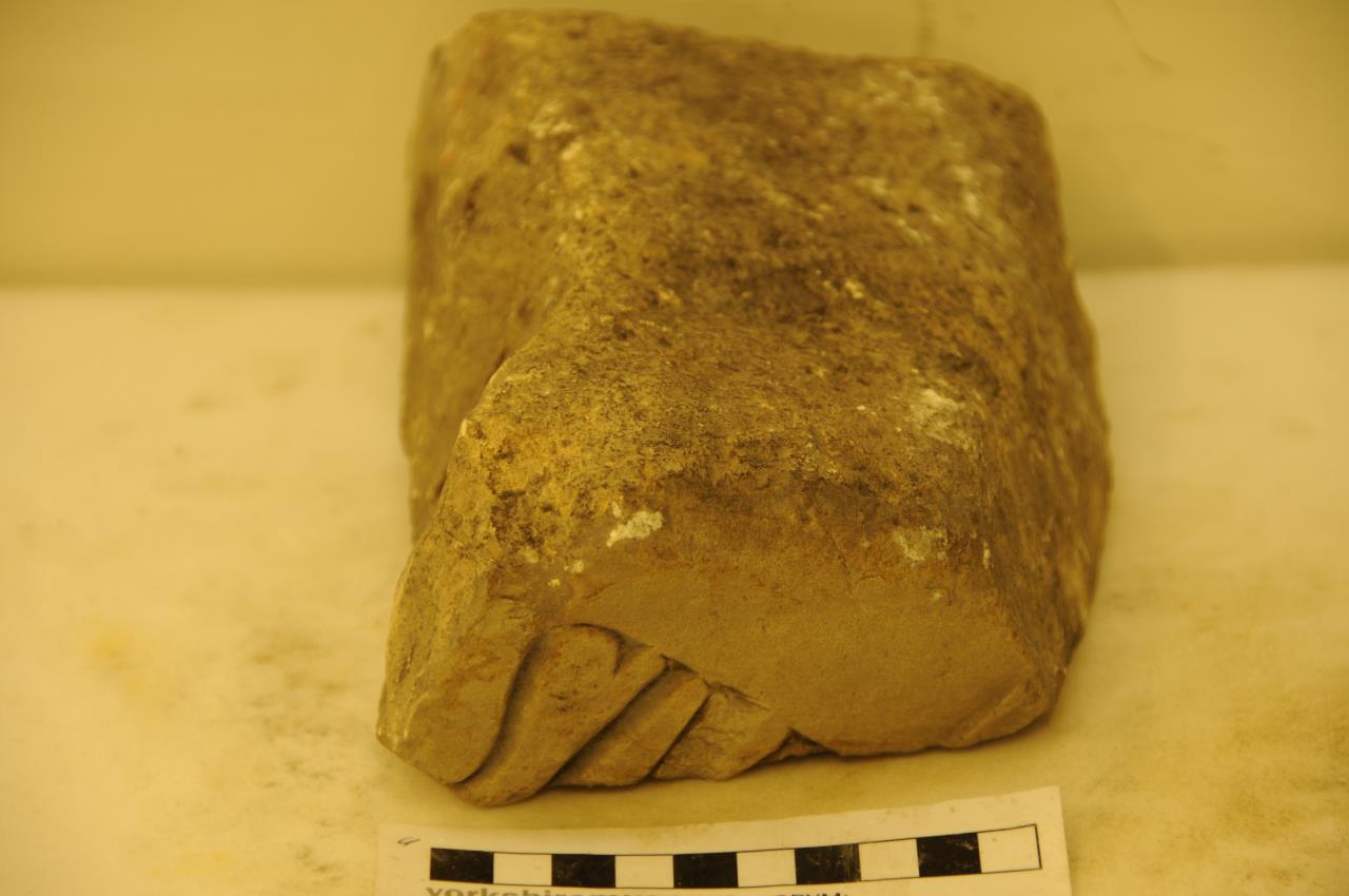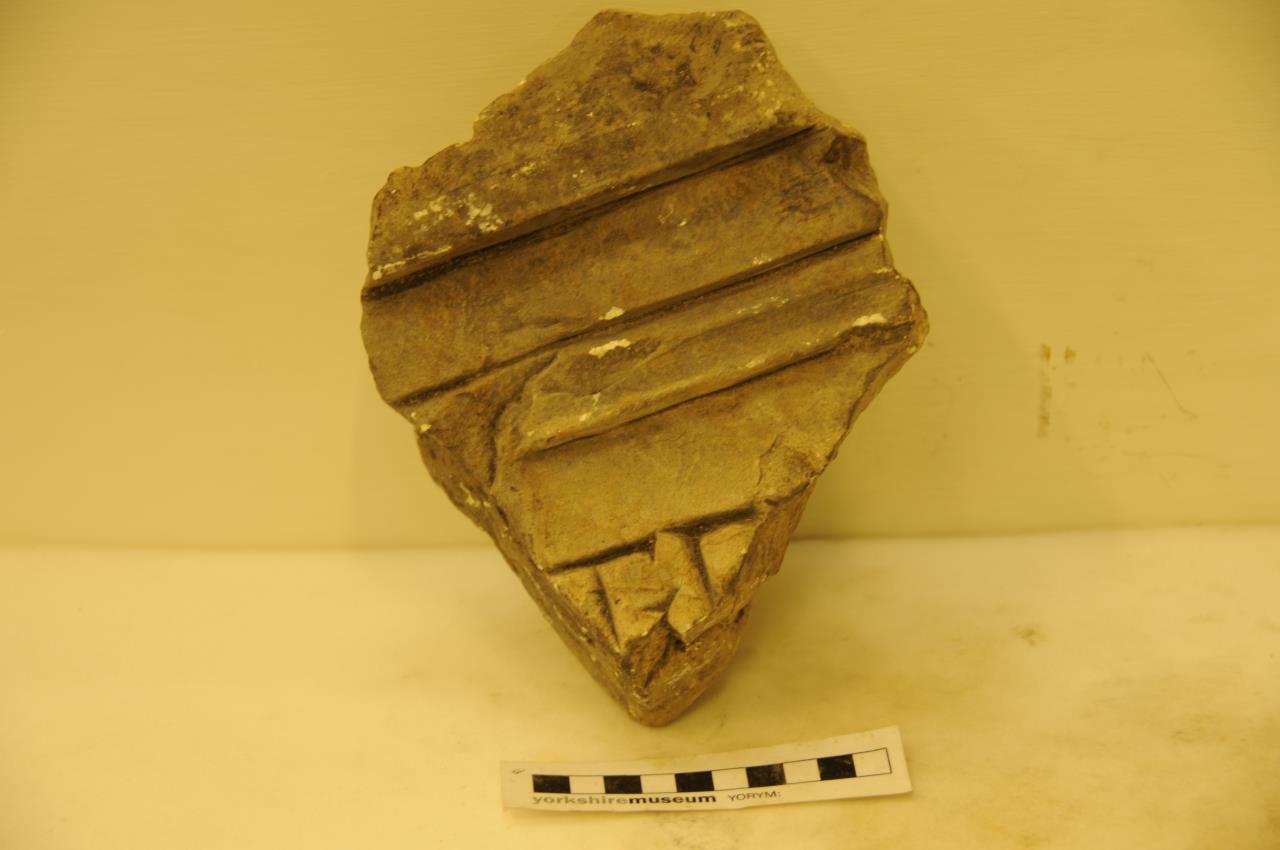 - Fragmentary inscribed object broken up into 11 small parts. RIB 642; "Fragments of a limestone dedication with moulding on the sides. Found in 1878 in the garden of the New (now Royal) Station Hotel, York...