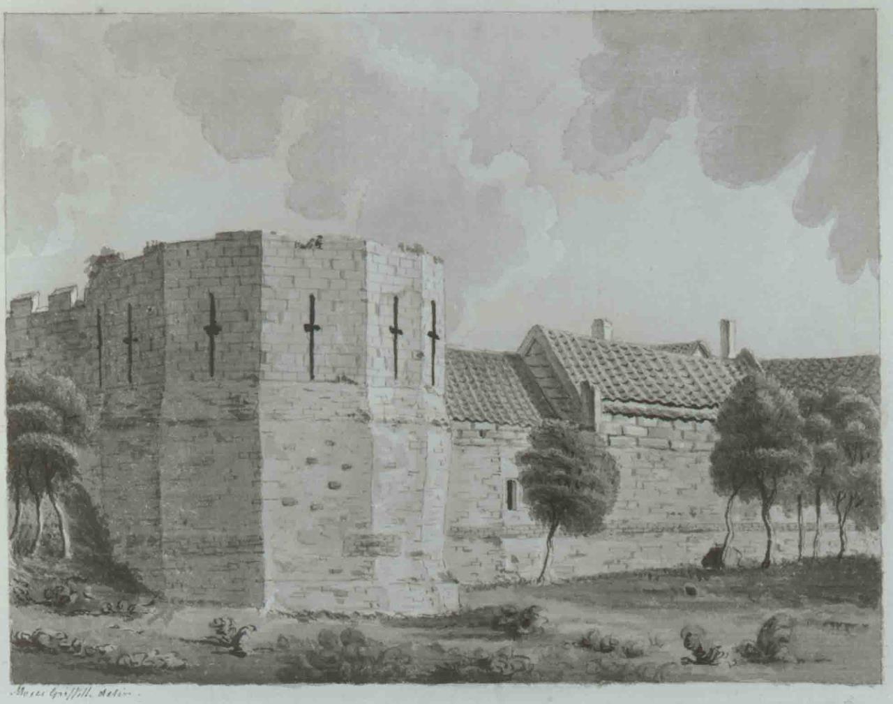 - Pencil, watercolour and pen and ink, on paper. Multangular Tower and Roman Wall.
