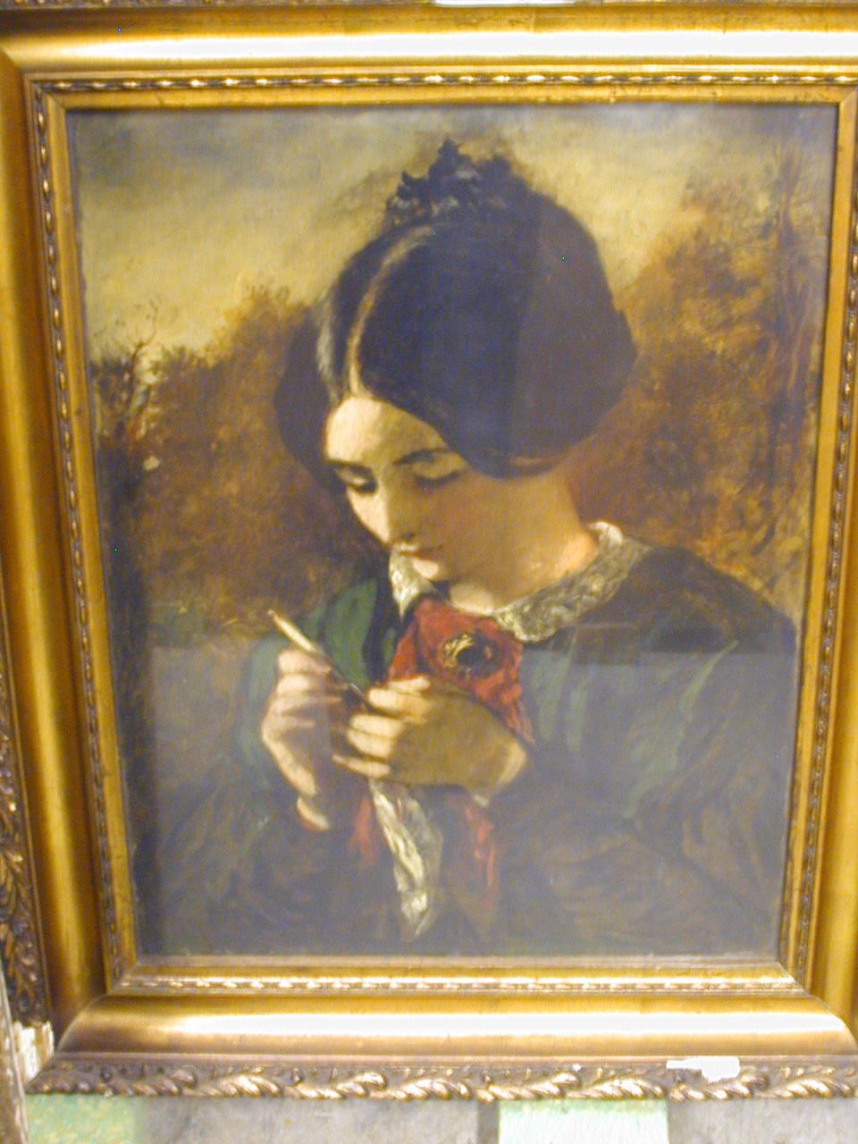- Finished work for the sketch 'The Crochet Worker' by Etty, already in York Art Gallery's collection. Shows girl crocheting. The sitter is Mary Purdon.