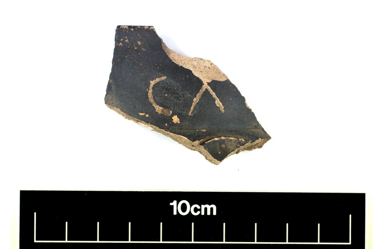 - Pedestal beaker neck fragment, of Nene-Valley Colour Coated ware. Scratched with graffito at the neck: CA