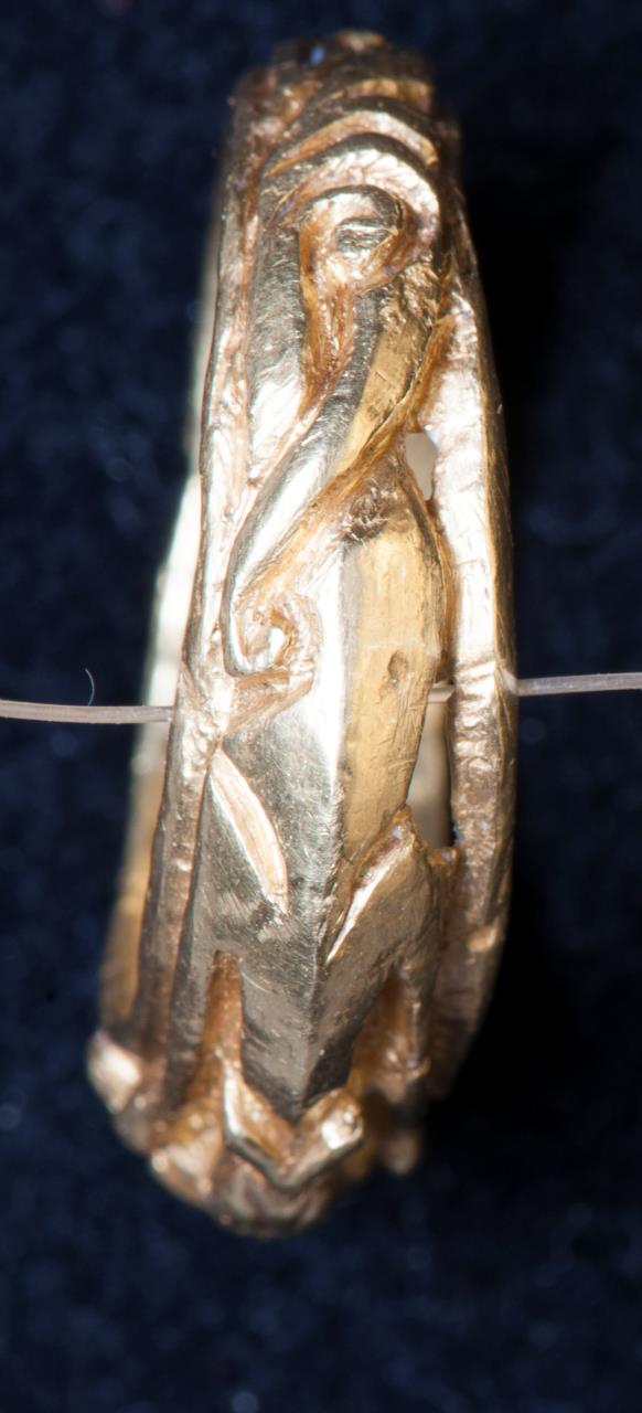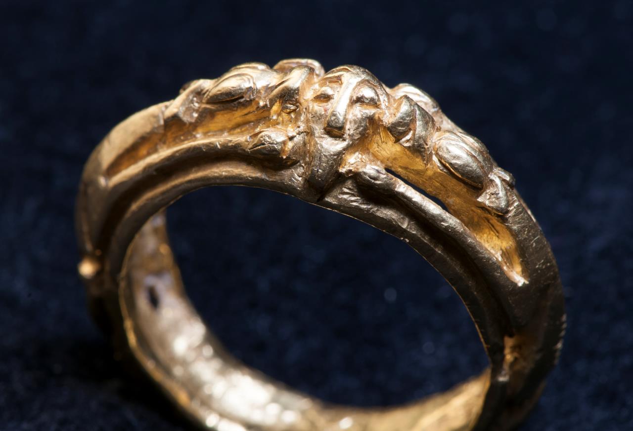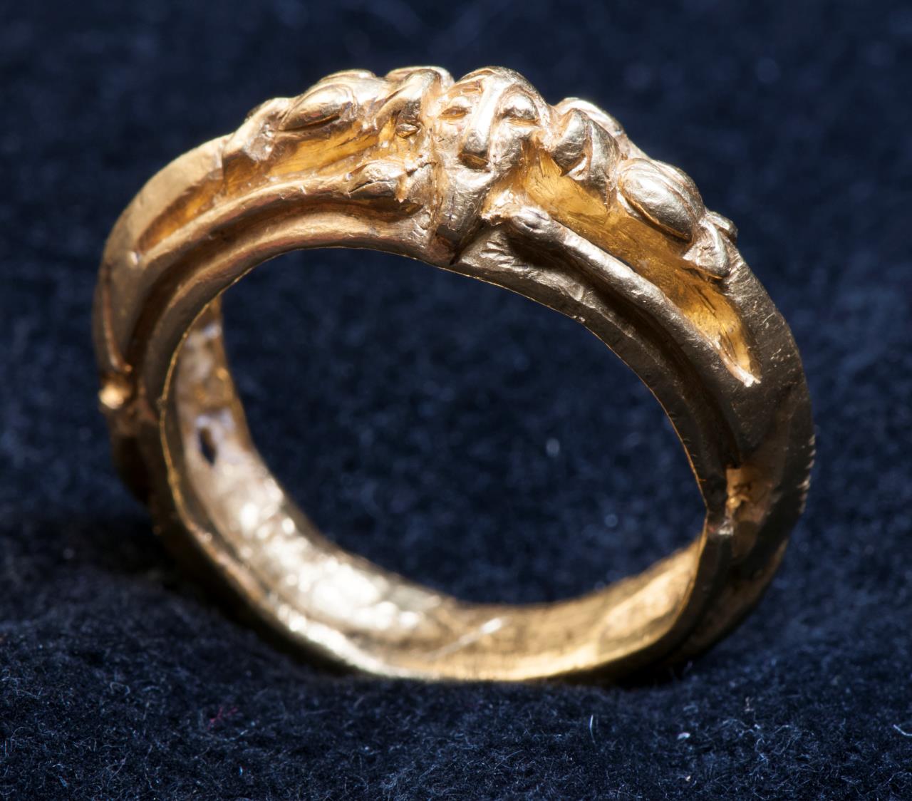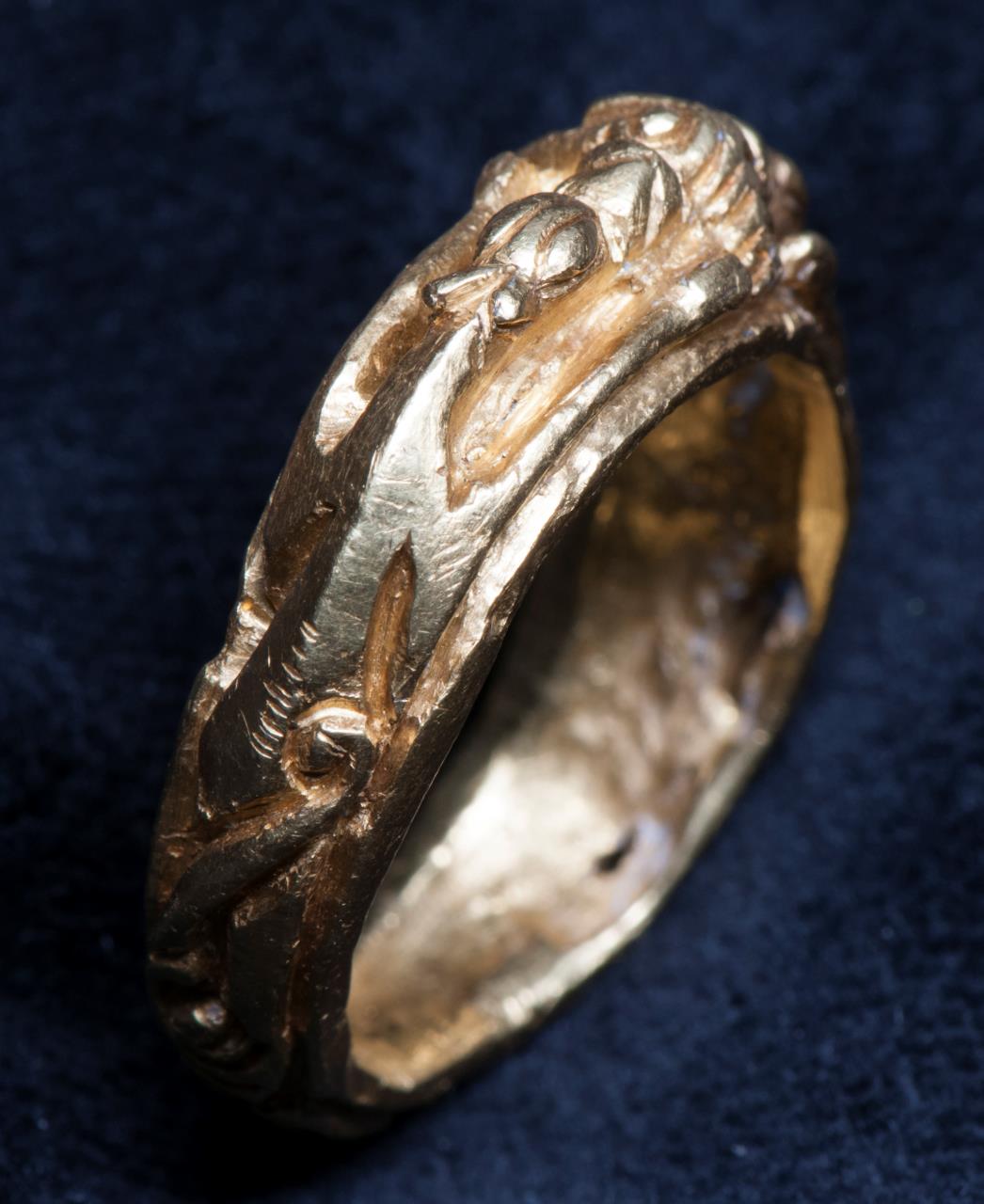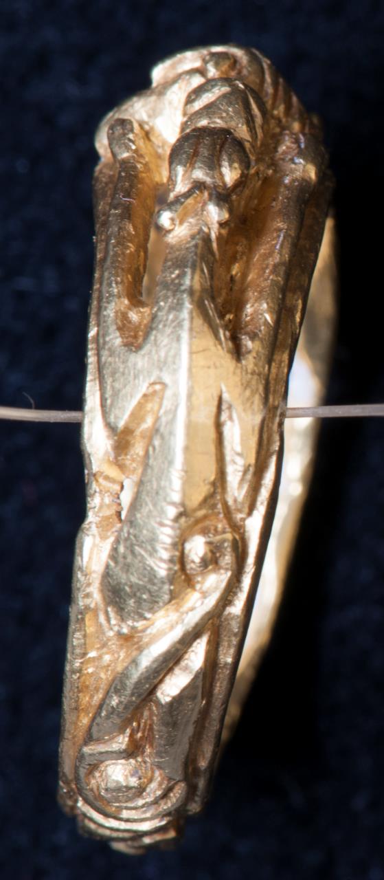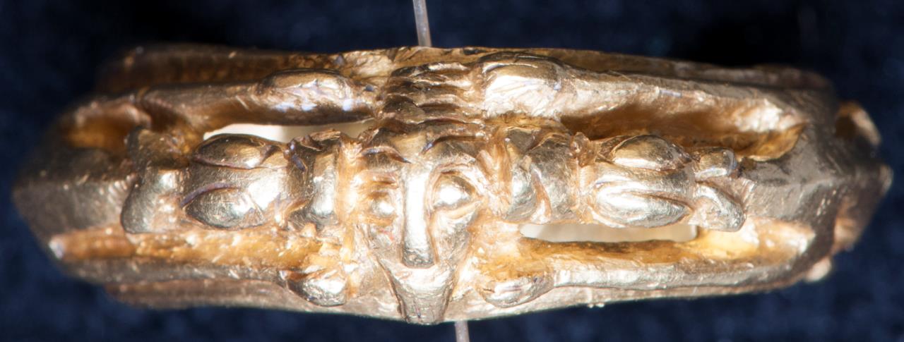 - Bezel has human head, flanked by animals.