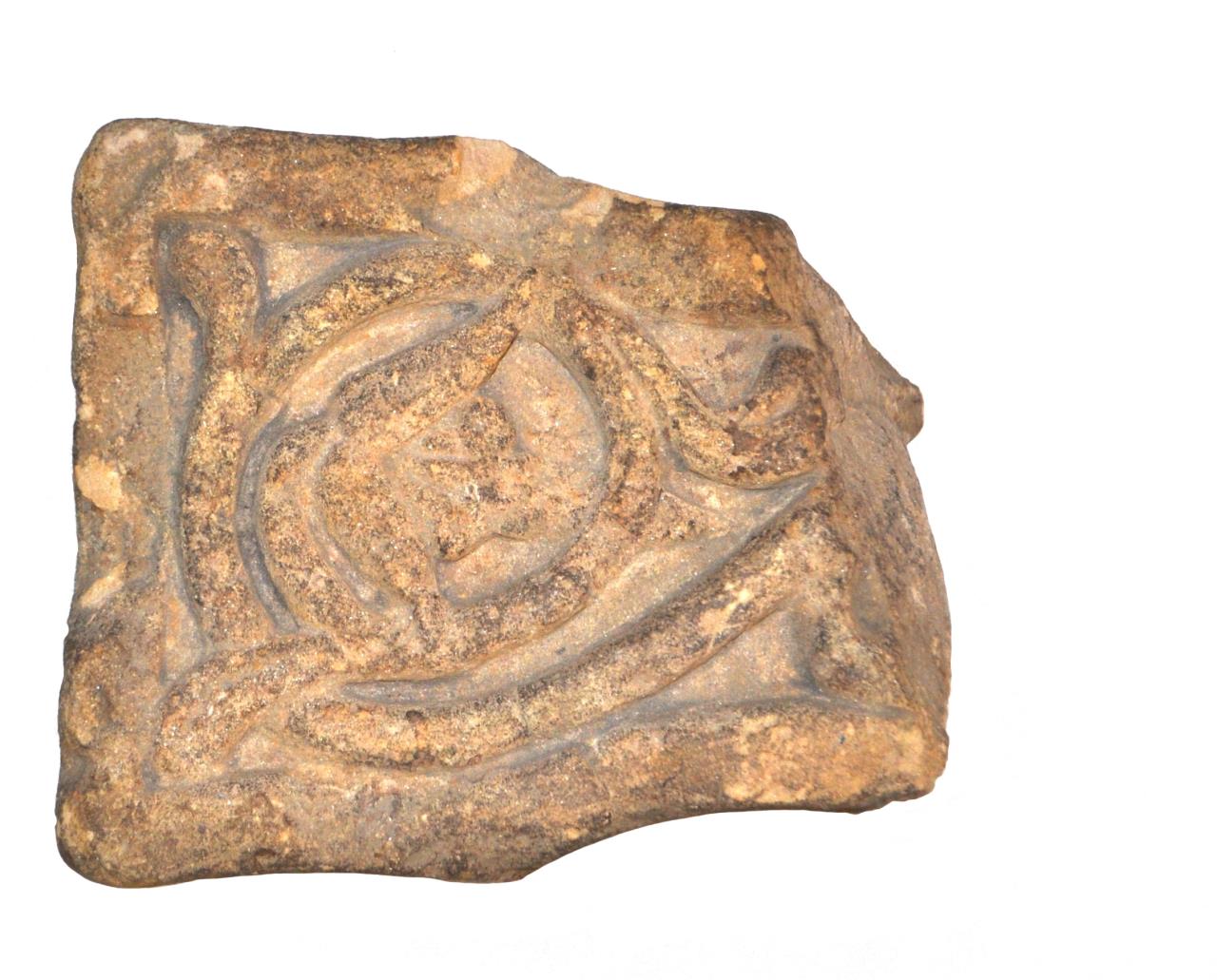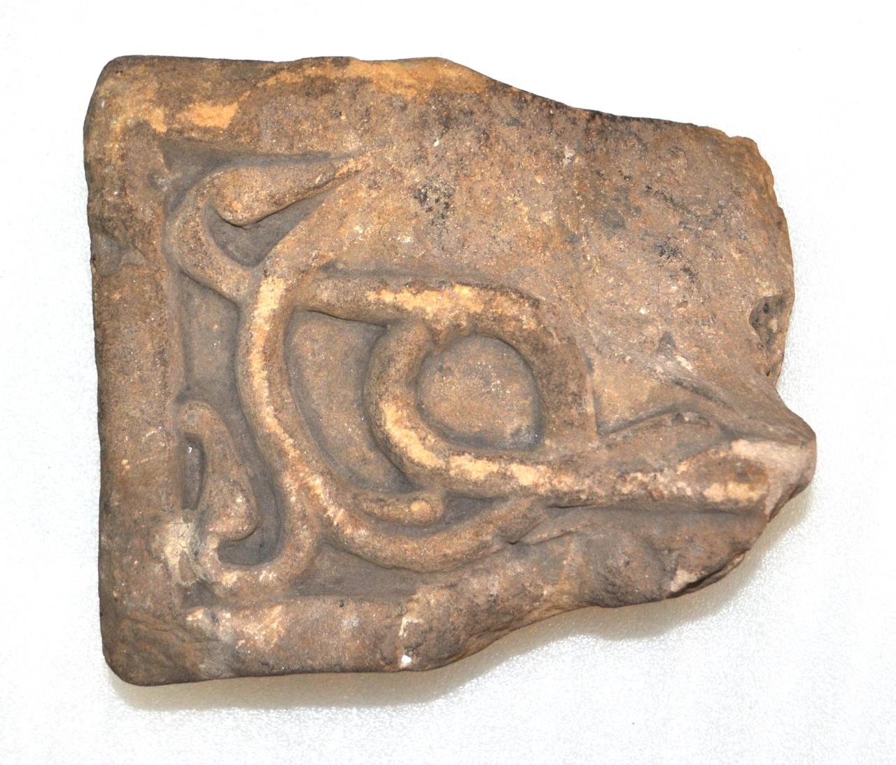 - Front decorated with vine-scroll and single-edge moulding and part of a Christ-figure.