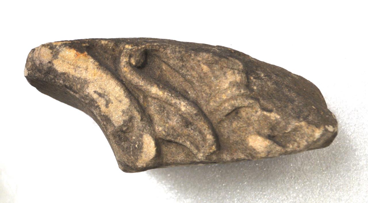 - Vine-scroll, single-edge moulding and flower in relief on front of cross.
