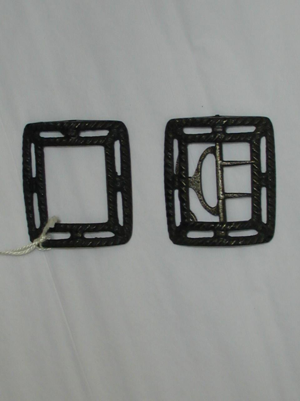 - Pair of shoe buckles. White metal, pierced frame.