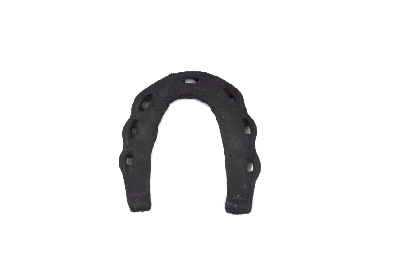 - Medieval Small Find. Horse shoe. Iron. 7 countersunk holes for nails, punching out of holes has bulged the shoes outline. The terminals are partially turned over. Horse shoes of the same design can be found in roman deposits. Marked D256. Dia 9.6cm