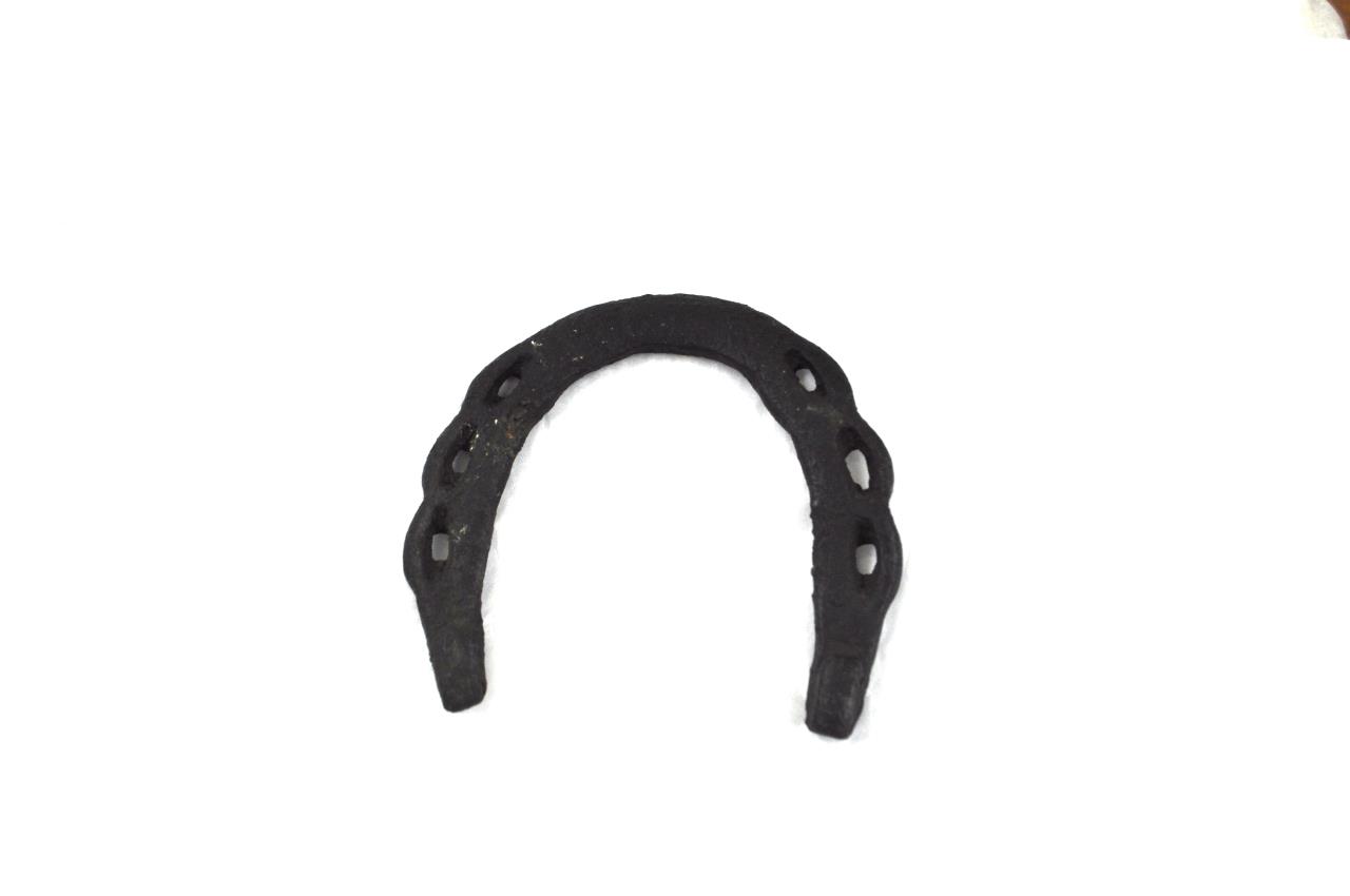 - Medieval Small Find. Horse shoe. Iron. 6 countersunk holes for nails, punching out of holes has bulged the shoes outline. The terminals are turned over. Horse shoes of the same design can be found in roman deposits. Marked D255.