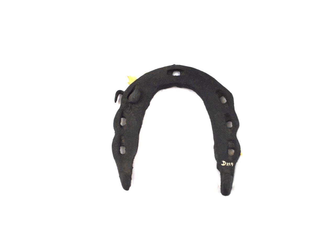 - Medieval Small Find. Horse shoe. Iron. 7 countersunk holes for nails (one nail present), punching out of holes has bulged the shoes outline. The terminal is turned over. Horse shoes of the same design can be found in roman deposits. Marked D229.