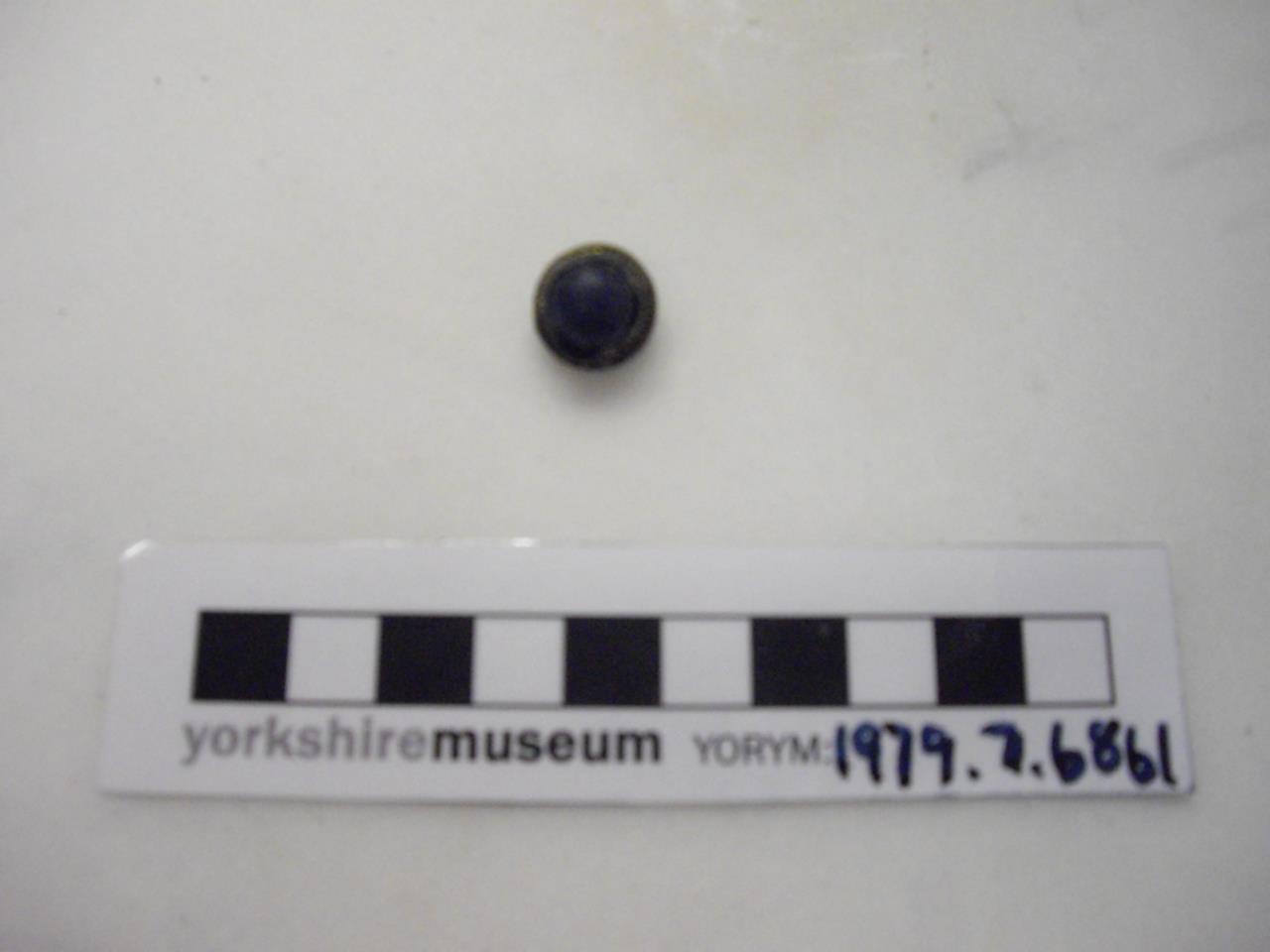 - Blue glass stud with copper alloy mount. Similar to those on the Ormside Bowl but not from the bowl; probably made in the same workshop.