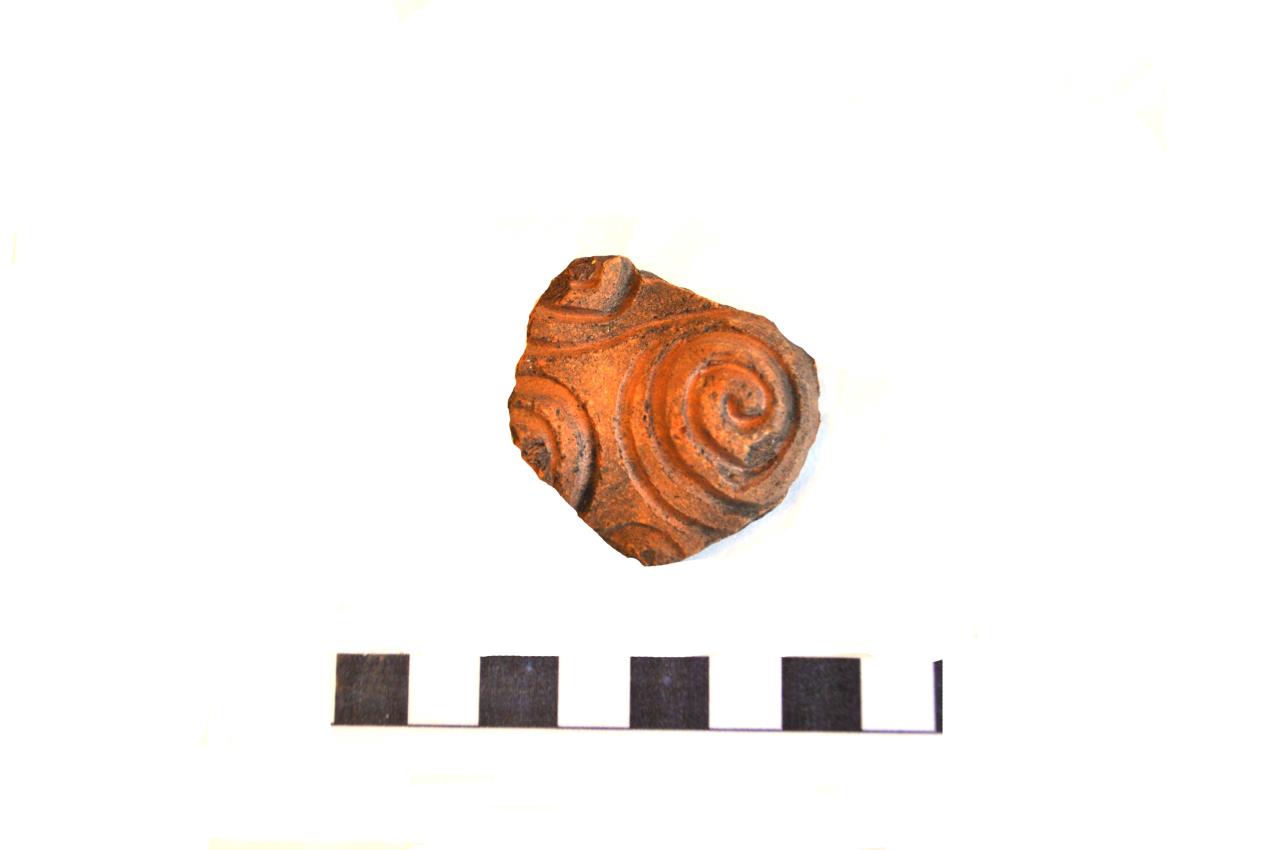 - Facial sherd of a face pot (face urn). Small fragment of beard or head hair only. Style is depicted as s-shaped coils raised towards the concentric centre.