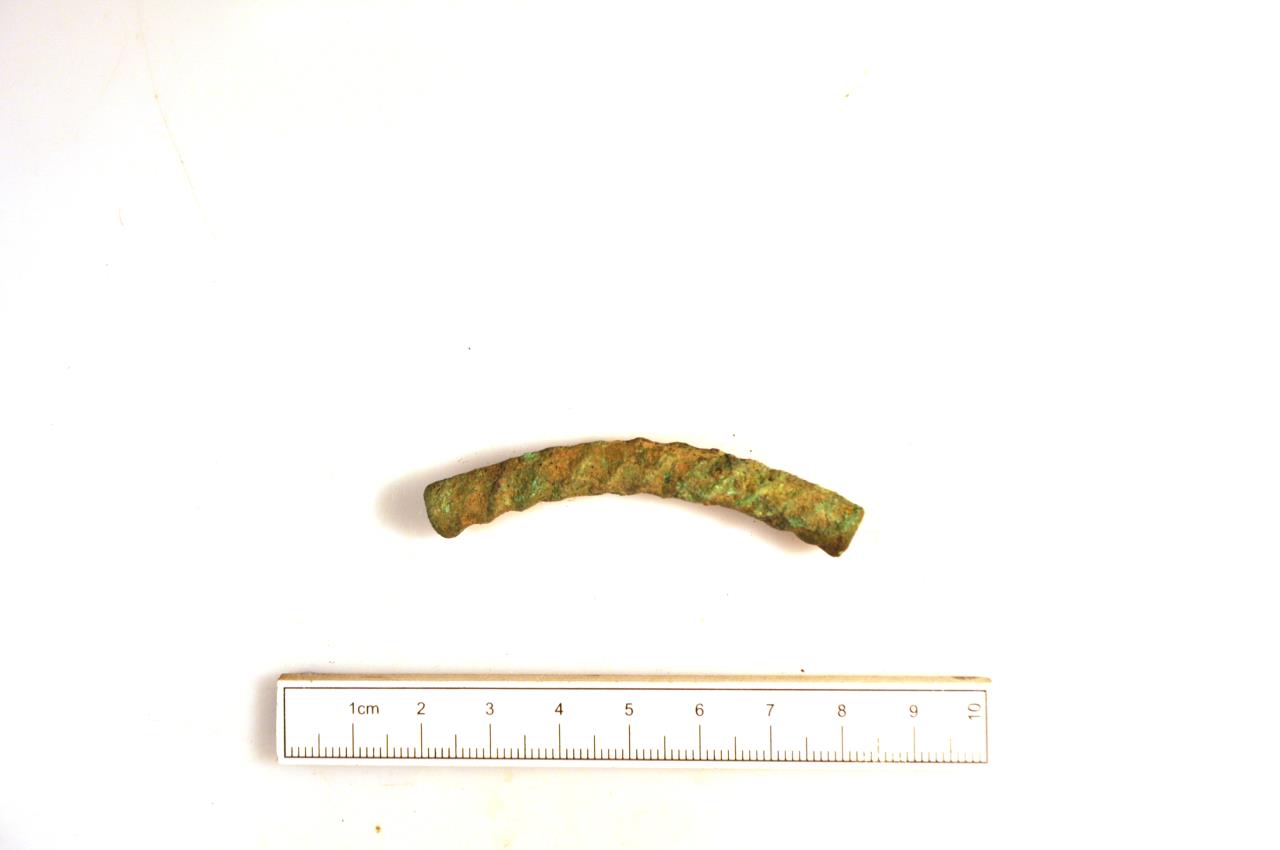 - Incomplete necklace (neck torc) or large armlet. Cast cable moulding, flat backed with a rounded surviving terminal.