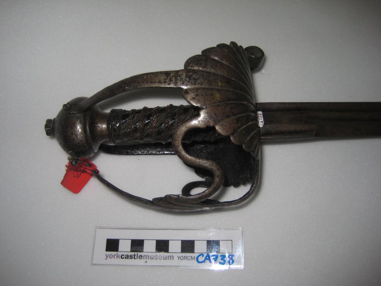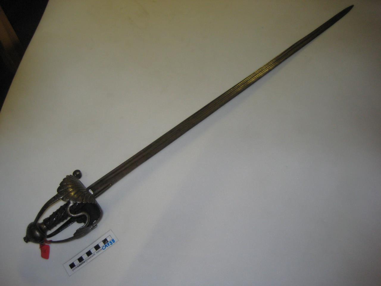 - Single edged double grooved blade marked "xx ANDREA FERARA xx". Plain basket hilt with side shells and counter guards. Pierced with heads and leaf designs. Blade has a running wolf mark. Blade probably a contemporary forgery, the hilt would certainly be of lower status than a genuine Ferara blade.