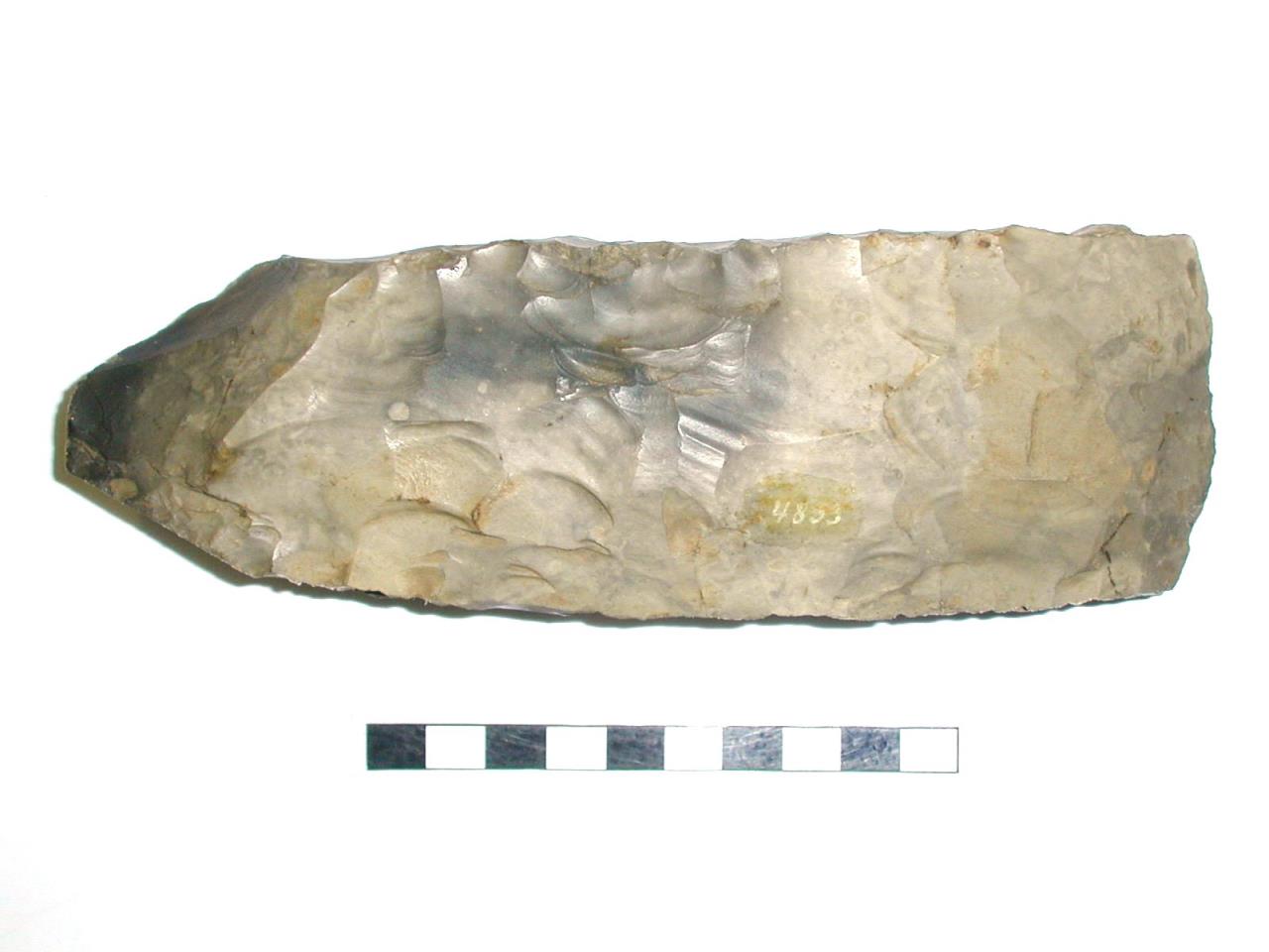 - Near parallel sides tapering towards the butt; cutting edge curved; butt rounded; rectangular section. 'Scandinavian' type.
