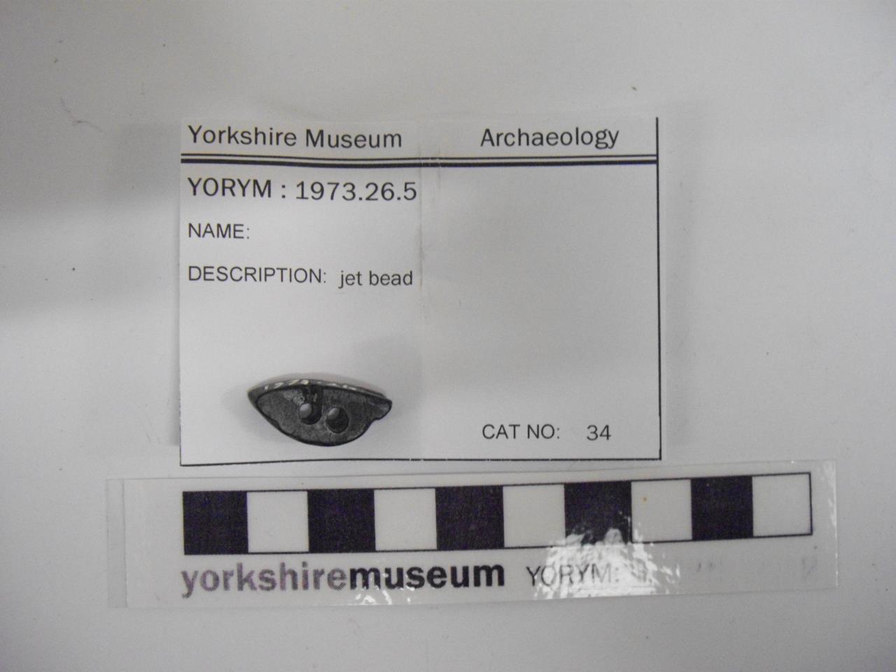 - Flat, elliptical bead which has had a decorated curved edge but the pattern has been worn smooth.