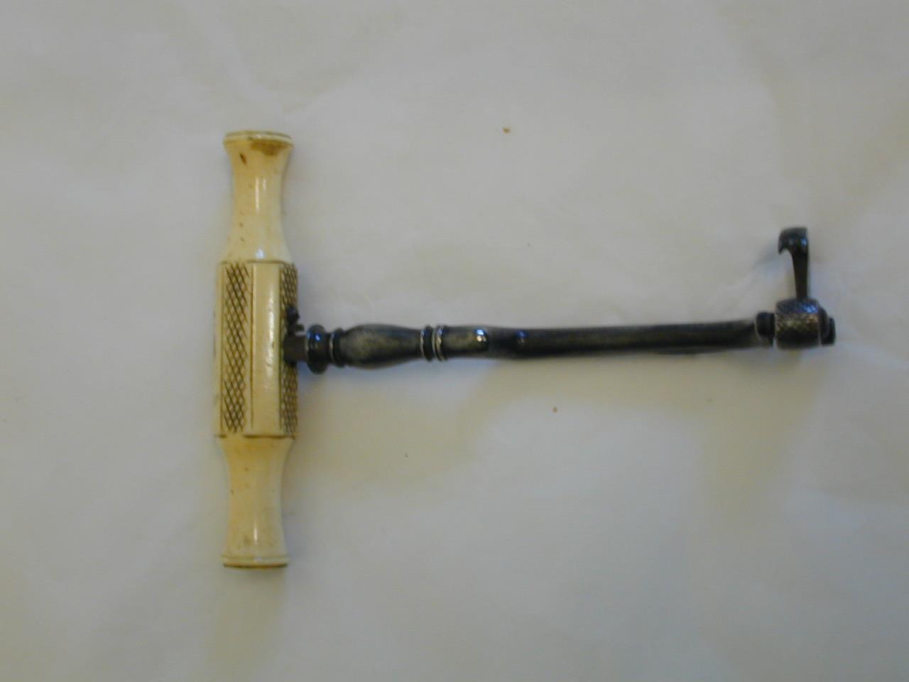 - A bone-handled and steel toothkey for extracting teeth. It converts from left to right hand by reversing the claw.