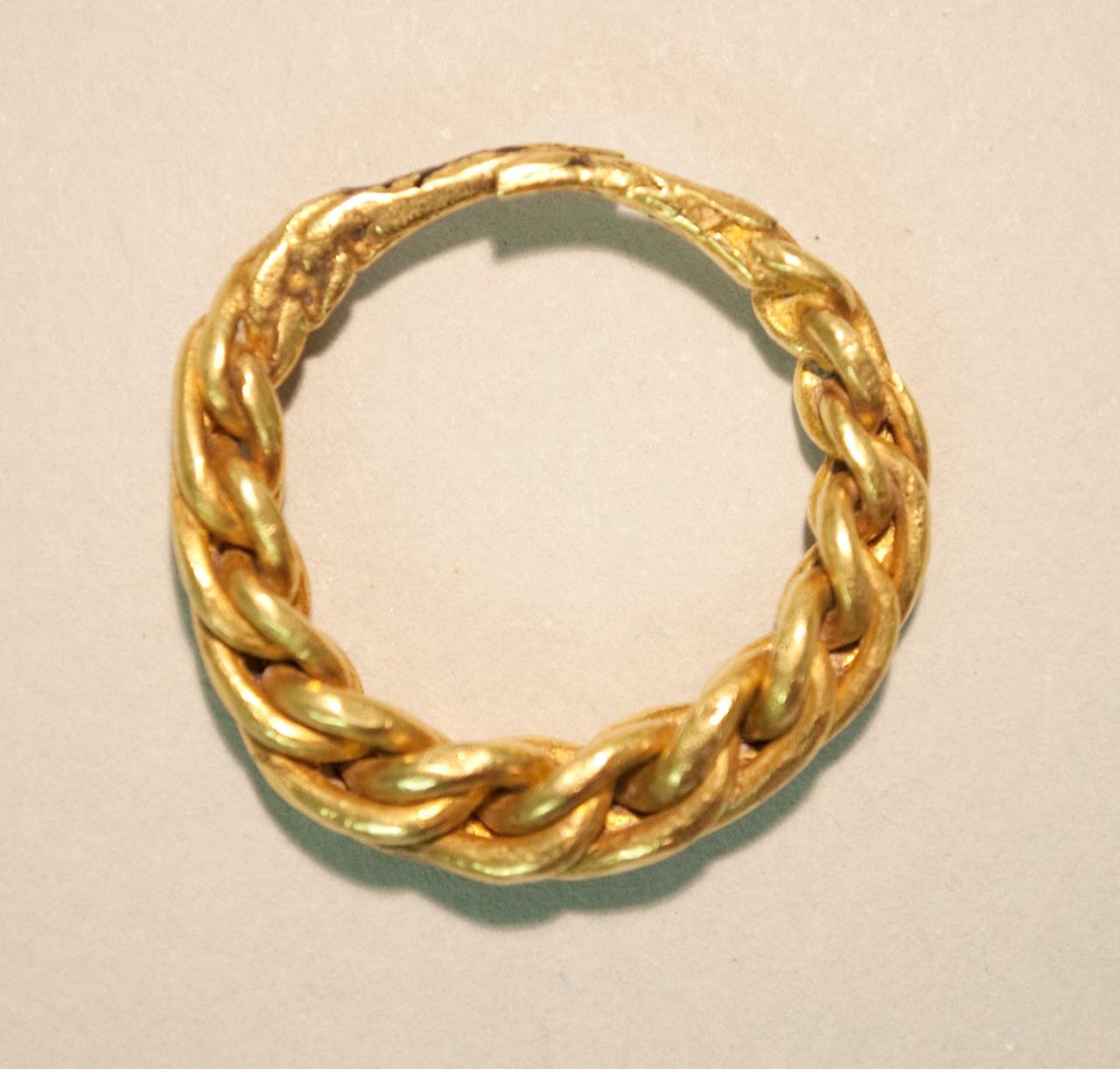 - Twisted wire. Waterman 1959 says "a gold ring comprising thin twisted wires drawn together and beaten flat at the extremities".